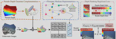 简介:我们提出了一种名为 Plenodium(plenoptic medium)的高效三维场景表示框架,能够同时建模物体与参与介质。与现有仅依赖于视角建模的介质表示方法不同,我们的全光介质表示结合了基于球谐函数的方向与位置编码,从而实现了高精度的水下场景重建。为了解决退化水下环境中的初始化挑战,我们提出了 伪深度高斯补全 方法,用于为 COLMAP 得到的点云引入稳健的深度先验。此外,我们设计了一种 深度排序正则化损失,以优化场景几何并提升深度图的序关系一致性。大量真实水下数据集上的实验表明,我们的方法在三维重建任务上取得了显著提升。进一步地,我们还构建了一个带有真实标注和可控散射介质的模拟数据集,用于验证该方法在水下场景中的恢复能力。