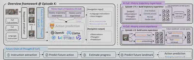 简介:连续环境下的视觉-语言导航(VLN-CE)要求智能体能够理解自然语言指令,并在复杂环境中自主导航至目标地点。随着大语言模型(LLMs)的飞速发展,近期研究开始尝试将其应用于“零样本 VLN-CE”,旨在解决传统基于训练的范式在泛化能力上的短板,并展现出了巨大的潜力。然而,目前基于LLM 的方案主要依赖于简单的推理进行决策,普遍缺乏有效的反馈机制——例如对历史错误的追溯以及对未来潜力的预判。这导致智能体一旦在任务初期陷入误区,往往会接连失败。在本文中,我们对基于 LLM 的零样本 VLN-CE 进行了重新思考,并提出了一种名为 EvoNav 的全新范式。EvoNav 通过 “未来思维链”(Future Chain-of-Thought, F-CoT) 和 “历史经验链”(History Chain-of-Experience, H-CoE),赋予了智能体预判未来与总结过去的能力。其中,F-CoT(未来思维链)通过预测后续动作和地标作为“思维引导”,辅助智能体进行导航进度评估与方向选择;H-CoE(历史经验链)将历史轨迹与场景凝练为“经验储备”,从而提升导航决策的可靠性。通过 F-CoT 与 H-CoE 的协同演进,智能体的决策能力得到了显著增强。在仿真环境与真实世界场景中的大量实验证明,EvoNav 能够显著提升导航性能。