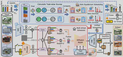 简介:近年来,随着预训练数据规模与质量的不断提升,图像复原基础模型取得了显著进展。在本工作中,我们发现,不同复原任务之间的数据混合比例同样是一个关键因素,直接决定了all-in-one图像复原模型的整体性能。为此,我们提出了一种高容量的基于扩散模型的图像复原基础模型FoundIR-v2,该模型采用数据均衡调度范式,对来自不同任务的混合训练数据比例进行动态优化。通过引入数据混合定律,我们的方法能够保证数据集组成的整体平衡,从而使模型在多样化任务中实现稳定的泛化能力与全面的性能表现。此外,我们在生成式预训练过程中引入了一种有效的混合专家驱动调度器,用于为各类复原任务灵活分配任务自适应的扩散先验,以应对不同任务在退化形式与退化程度上的差异。大量实验表明,我们的方法能够覆盖超过50个子任务,适用于更广泛的真实场景,并在与当前最先进方法的对比中取得了具有竞争力的性能。