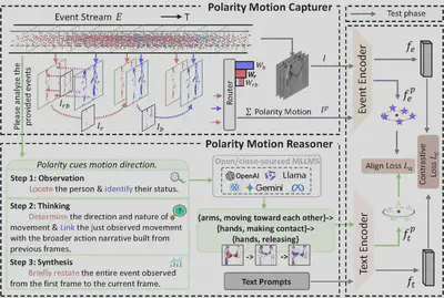 简介:基于事件的动作识别 (EAR) 为理解复杂条件下的动态行为提供了一条很有前景的途径。视觉语言模型的最新进展将跨模态学习范式引入 EAR,使模型能够将事件流与文本语义关联起来,从而增强概念理解。然而,现有方法通常忽略了事件数据中固有的极性驱动运动线索,导致时空表征并非最优。为了解决这一局限性,我们提出了一种极性知识增强框架 (POKER),该框架显式地整合了跨视觉和文本模态的事件极性感知运动知识。POKER 由两个协同组件构成:极性运动捕捉器 (PMC) 和极性运动推理器 (PMR)。具体而言,PMC 将正负极性解耦以捕捉极性敏感的运动线索,而 PMR 则通过大型语言模型对极性引起的运动动态进行语义分析。 通过极性对齐,POKER 将语义推理与视觉动态相结合,从而实现更具区分性的表征。在多个基准测试上的大量实验表明,POKER 能够提升各种事件表征的性能。